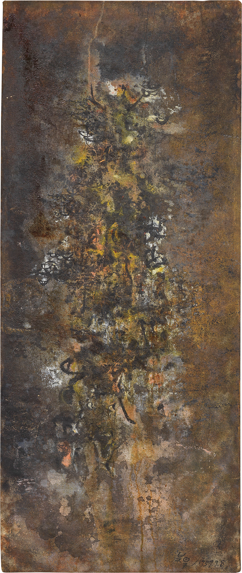Ideogramma e data in basso a destra: [...] 1959.9.8; firma, titolo e data al verso sulla tela: Wu Hao / "Paint" / 19[5]9.
