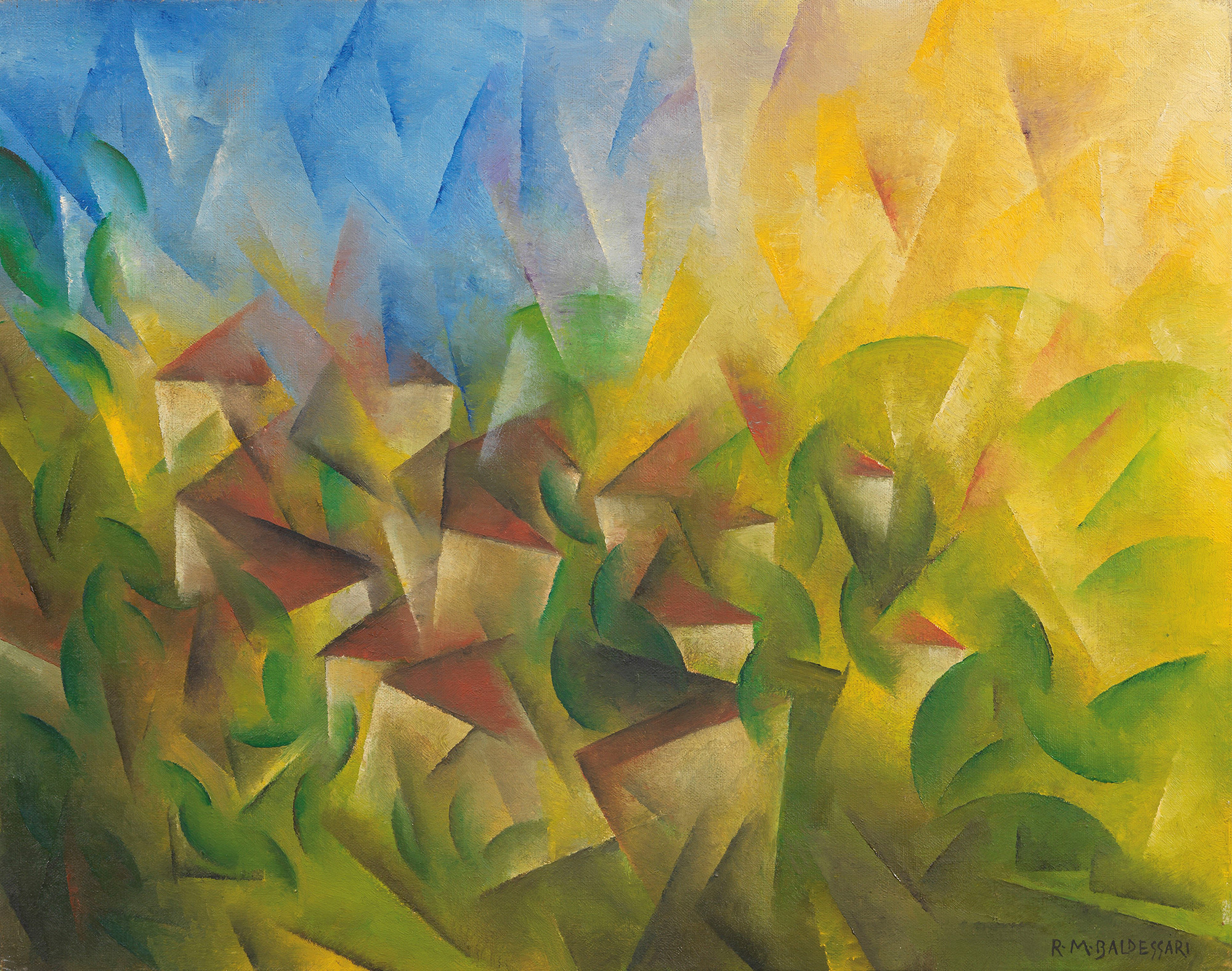 Roberto Marcello (Iras) Baldessari, Riflessi su paese all'alba, 1917 ca.