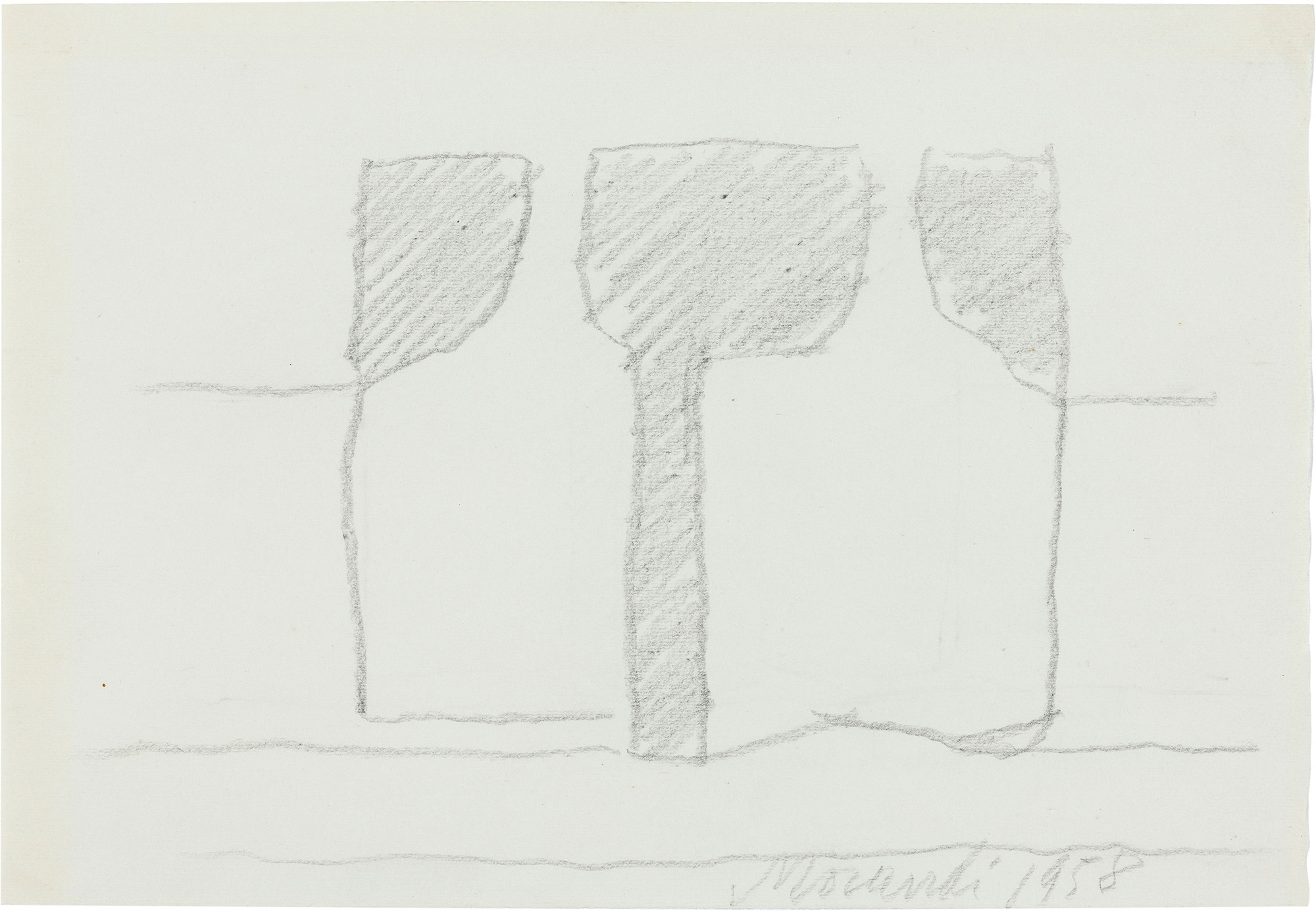 dichiarazione di autenticità al verso: Bologna, 21.6.1978 / Questo disegno è opera di Giorgio Morandi / Anna Morandi / Maria Teresa Morandi; su una carta al verso della cornice: etichetta Galleria Marescalchi, Bologna, con n. 25.