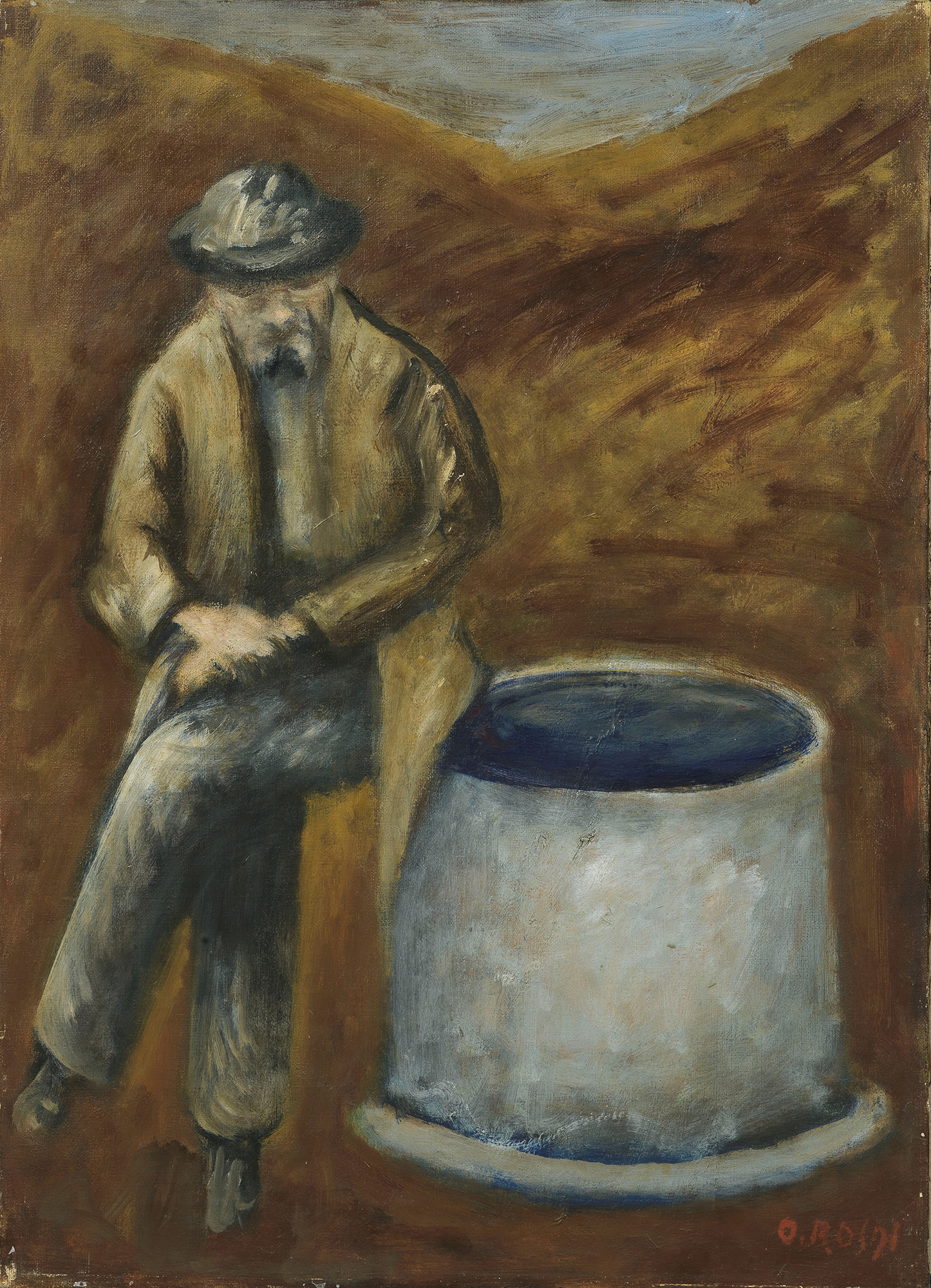 Firma in basso a destra: O. Rosai; titolo, firma e data al verso sul telaio: "Uomo sul pozzo" / O. Rosai / 1952: