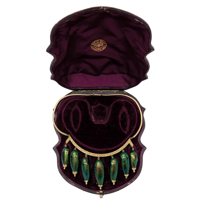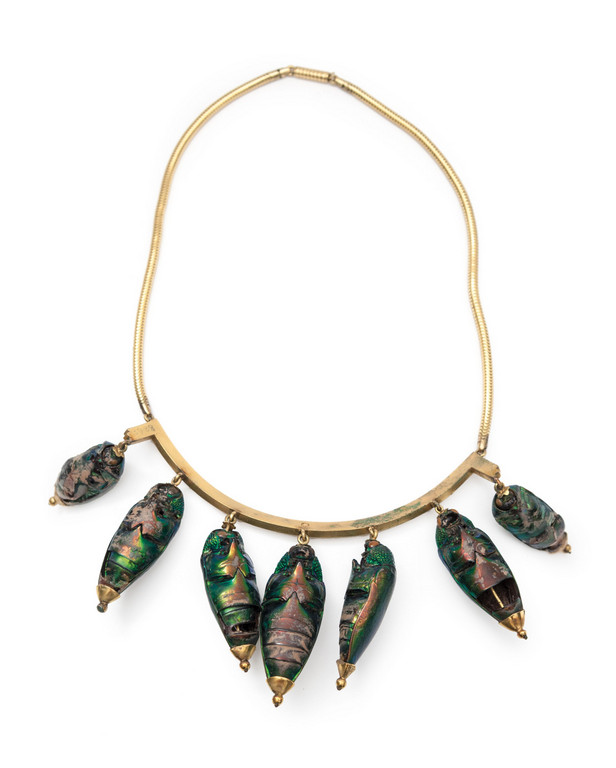 e sette 'buprestidae' (coleotteri) irridescenti pendenti.