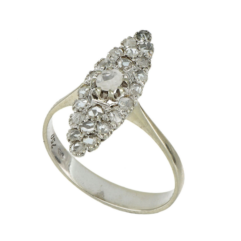 Anello in oro bianco a 'Figaro' con al centro diamante taglio rosa e altri a pave' per stimati complessivi ct.0 50.