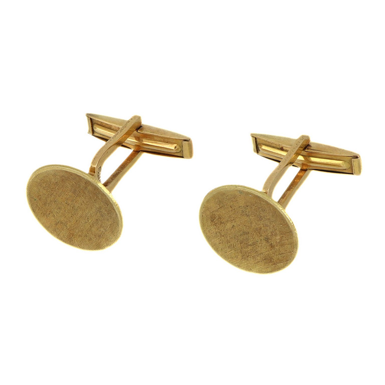 Gemelli in oro giallo a bottone concavo lavorati a tessuto.