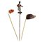 Lotto composto da 3 spille da cravatta in oro di antica fattura una raffigurante moretto veneziano con smalti una con testa di cane in corallo e una con testa di rapace in quarzo inciso.