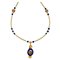 Lunga collana in oro giallo e lapislazuli a cubetto intercalati micromosaico centrale e orecchini in parure.