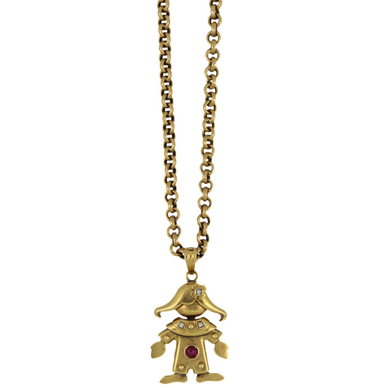Damiani ciondolo in oro giallo con piccolo rubino e brillantini a forma di bimba.