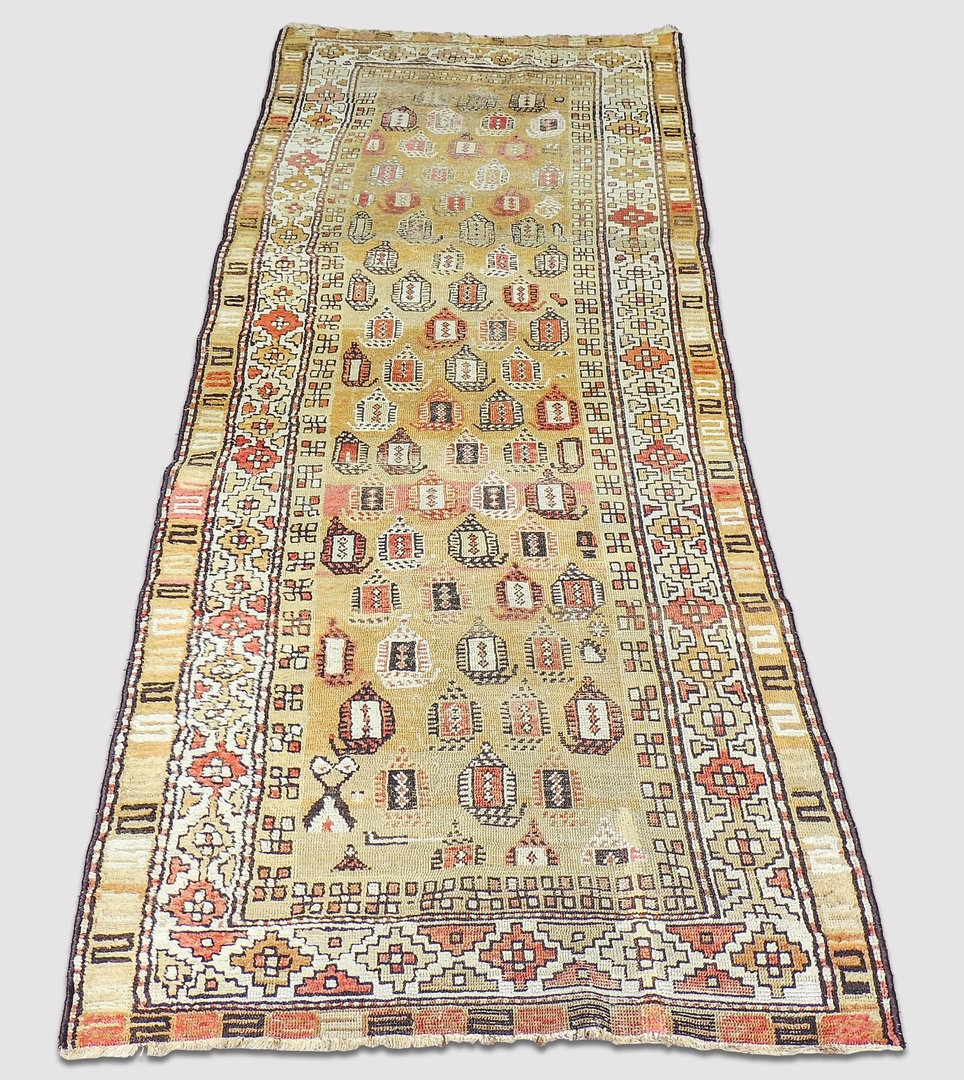 Lotto 985 | TAPPETO KARABAK fondo beige, campo con motivi a bothè cm 280x95