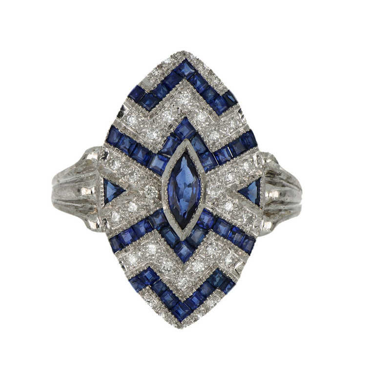 Anello in oro bianco a 'Figaro' con piccoli zaffiri e diamanti.