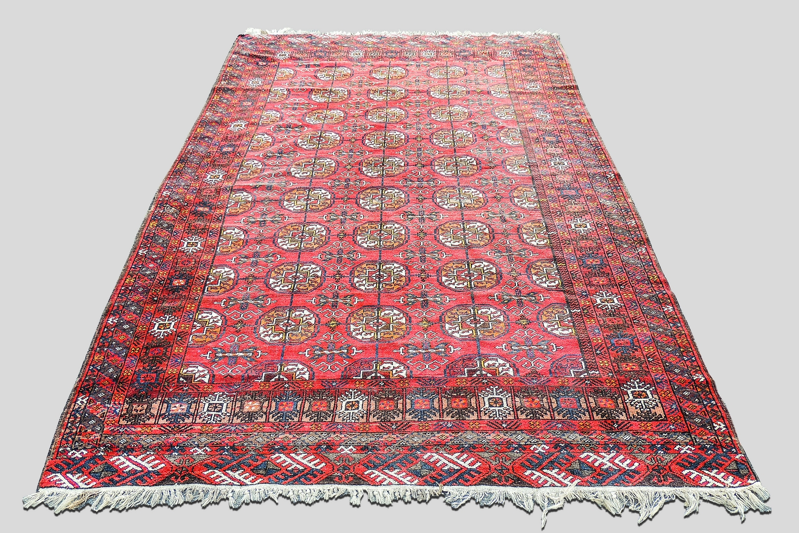 Lotto 987 | TAPPETO BUKARA fondo rosso con medaglioni a zampa di elefante