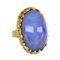 Sforza grande anello in oro giallo a lavorazione martellata tipica della firma genovese al centro corindone varietà zaffiro traslucido latteo taglio cabochon di ct. 84 14.