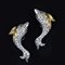 Orecchini a firma Maoubussin Paris in oro giallo e platino con marchi di garanzia francesi raffiguranti due delfini montati con clips al lobo.