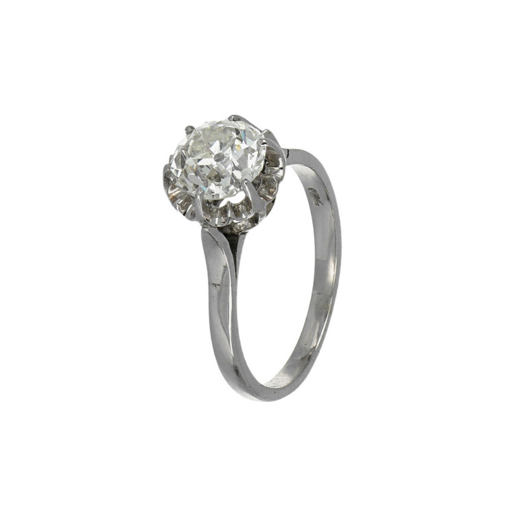 Anello in oro bianco con al centro diamante taglio old mine di stimati ct. 1 80 ca. montato a solitario.
