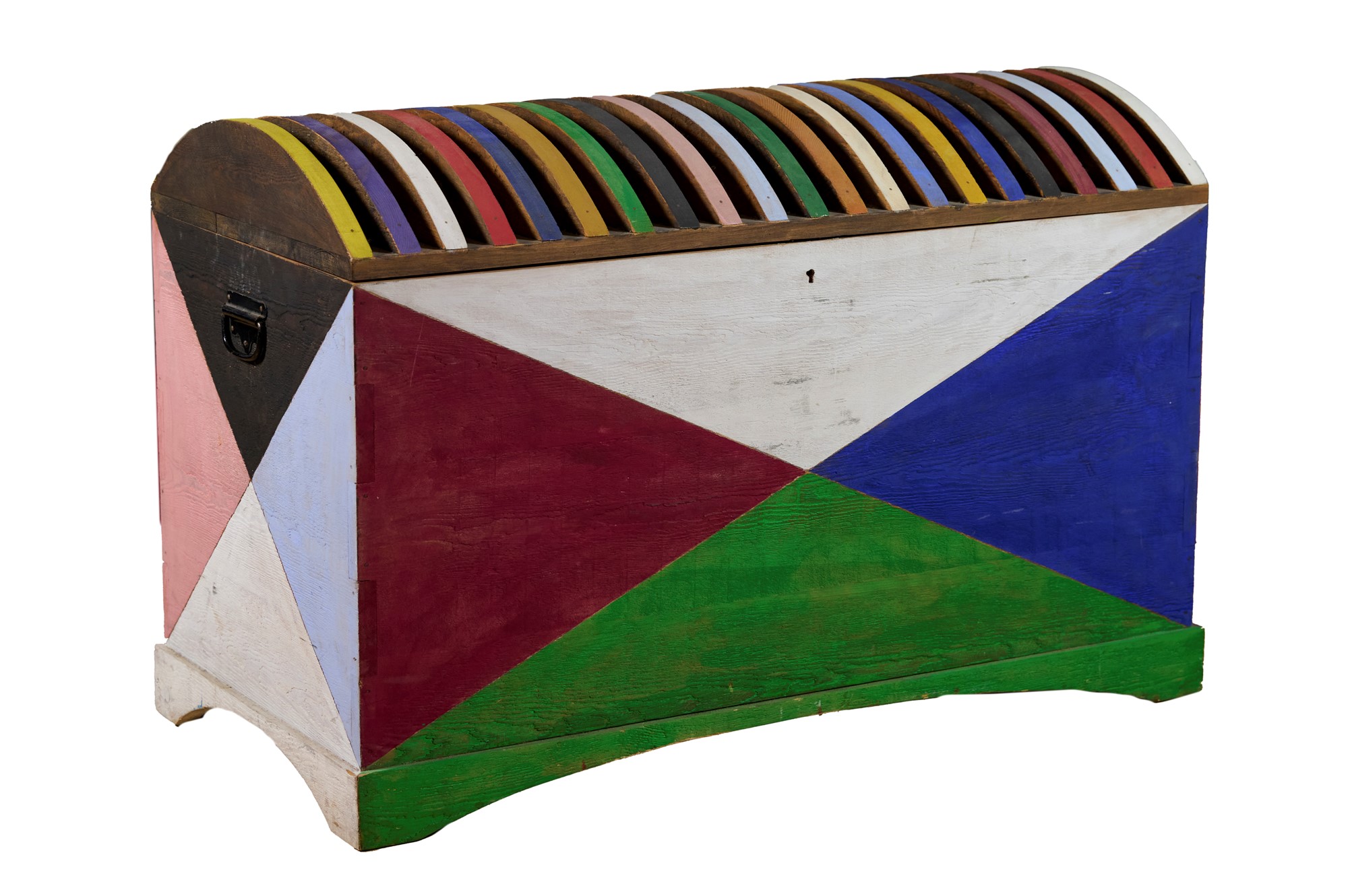 Baule in legno di abete massello dipinto a mano cm 67x100x50