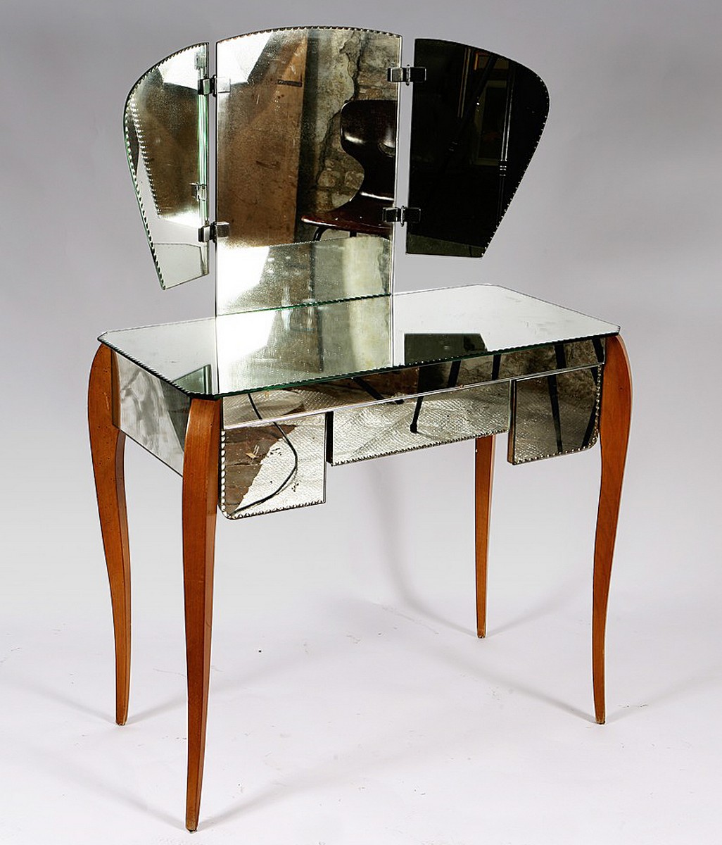 ANONIMO. Deliziosa consolle in stile veneziano , ricoperta di specchi molati e tre cassetti. Lovely Venetian-style console, covered with bevelled mirrors and three drawers. Wood and mirrors. Legno e specchio. Cm 130x80x40. Anni 50. 1950.