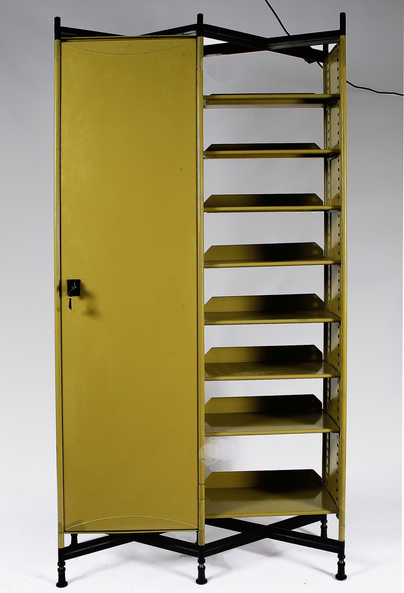 BELGIOSO PERESSUTTI ROGER ( GRUPPO BBPR). Mobile per ufficio della serie Spazio. Disegnato per Olivetti. "Spazio" office forniture.Painted metal for Olivetti. Metallo verniciato. Cm 101x197. 1959.