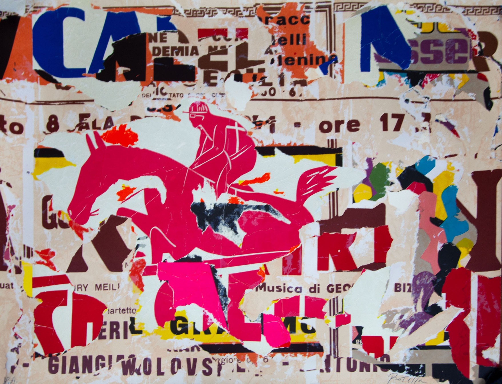 MIMMO ROTELLA(CATANZARO 1918 - MILANO 2006)serigrafia e collage su cartoncinoesemplare P.A.cm 130x179firmata in basso a destranumerata in basso a sinistra