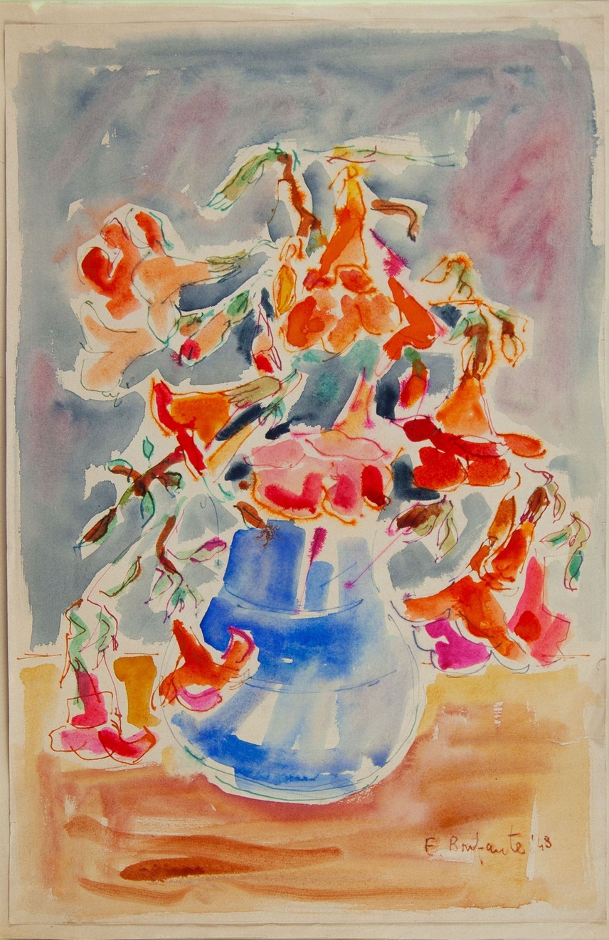 BONFANTE F.'Vaso di fiori'acquerello su cartaanno 1948cm 46,5x31,5firmato e datato in basso a destraCertificato di autenticita' rilasciato da 'Spirale' - Milano