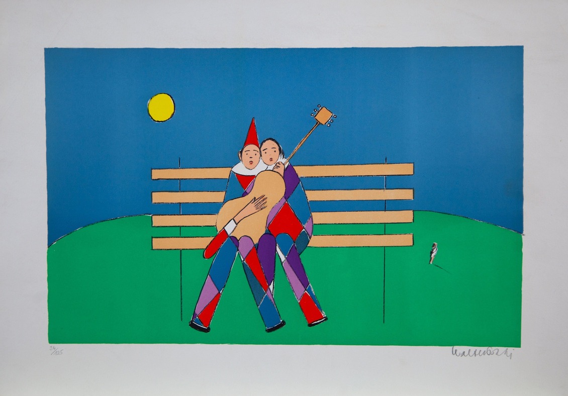 POZZI WALTER'Gli innamorati'litografia su cartaesemplare n. 24/125cm 35x50firmata in basso a destranumerata in basso a sinistraCertificato di autenticita' a cura di 'Spirale' - Milano