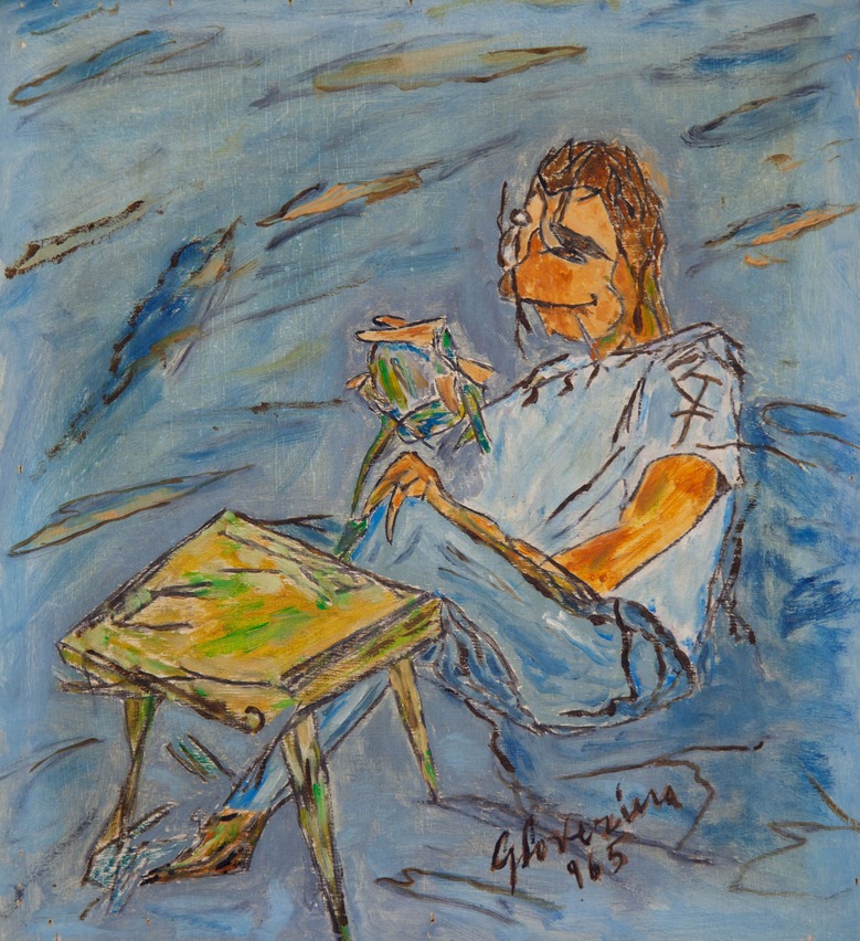 SOVERINA GIOVANNI'Uomo seduto'olio su tavolaanno 1965cm 35x32firmato e datato in basso a destra