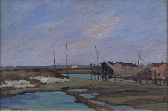 BANDOLI RENZO'Bassa marea'olio su tavolaanno 1976cm 40x60firmato in basso a sinistraal retro: titolo, firma e anno
