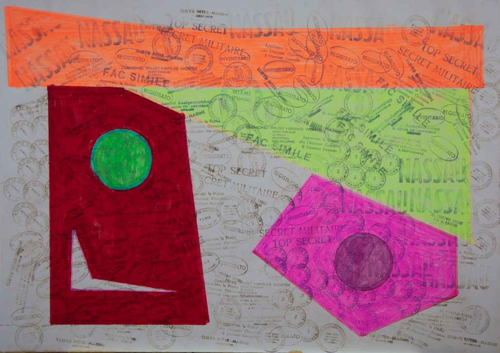 CAMPANELLI VINCENZO'Scritture, numeri e figure geometriche'tecnica mista su carta applicata su telacm 50x70titolata al retroopera non firmataal retro: etichetta dell'Artista