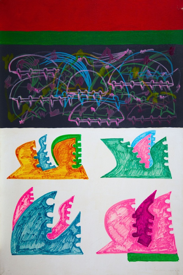 CAMPANELLI VINCENZO'Macchine iridiste'acrilico su telaanno 1984cm 60x40opera firmata, datata e titolata al retro