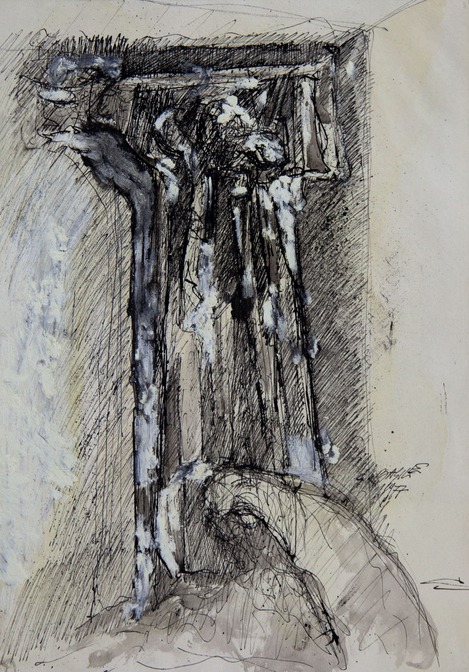 BASILE G.'Senza titolo'tecnica mista su cartaanno 1977cm 36x26firmata e datata in basso a destraCertificato di autenticita' a cura di 'Spirale' - Milano