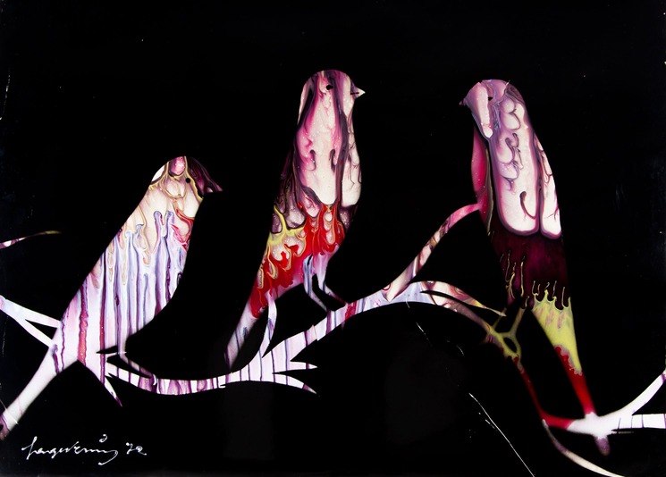 VERNISSAGEtecnica mista su cartaanno 1972cm 70x100firmata e datata in basso a sinistradiffuse imperfezioni