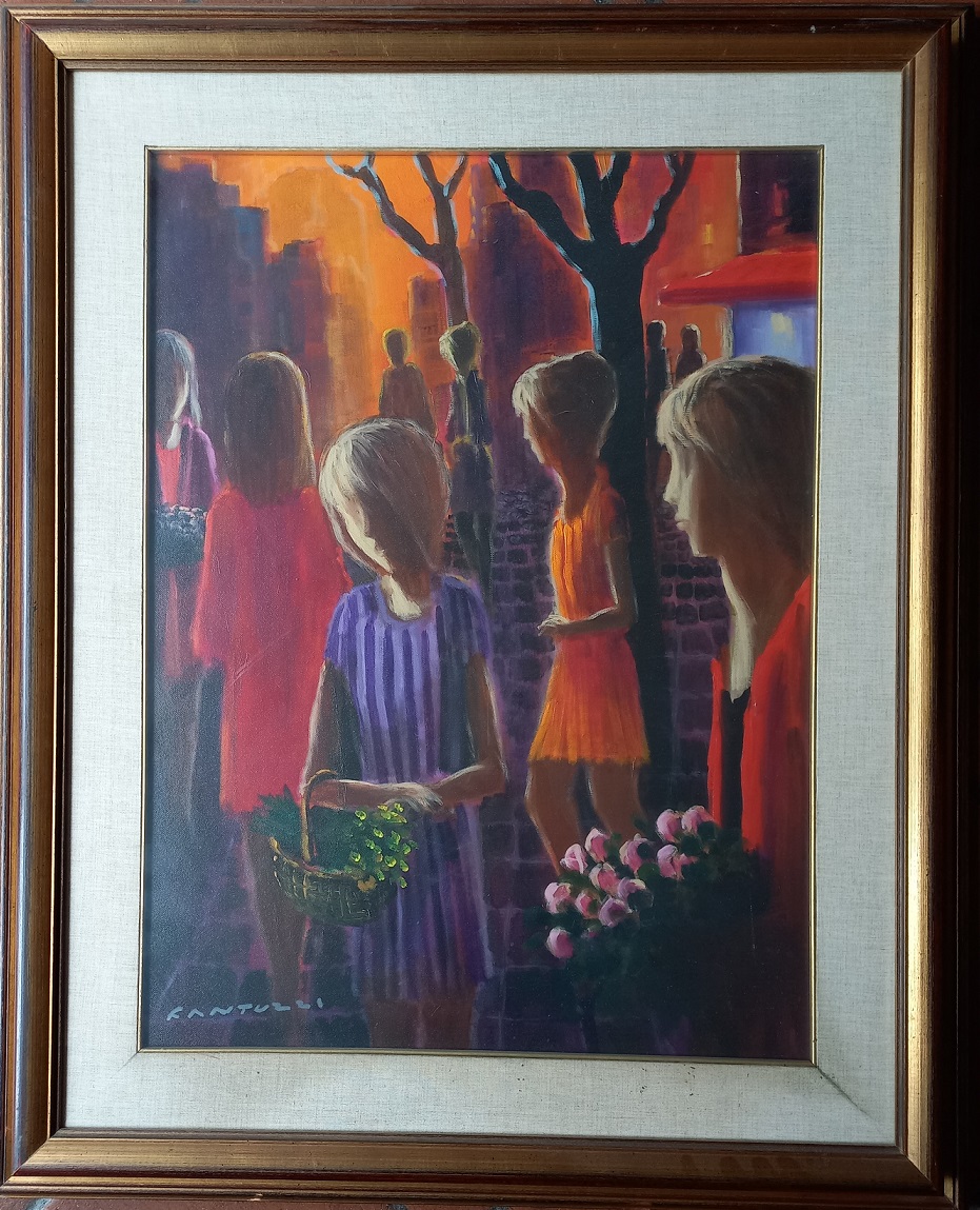 Fantuzzi Eliano (1909-1987) - Trastevere al tramonto - olio su tela cm.80x60 firmato in basso a sinistra e al retro - ex collezione Ettore Bozzi