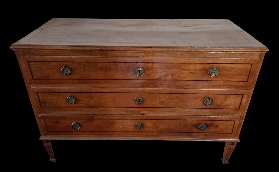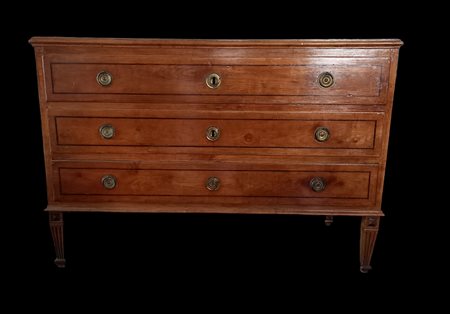 Comò in noce a tre cassetti filettati, gambe rastremate e scanalate cm.127x55 h.cm.89 - fine XVIII secolo