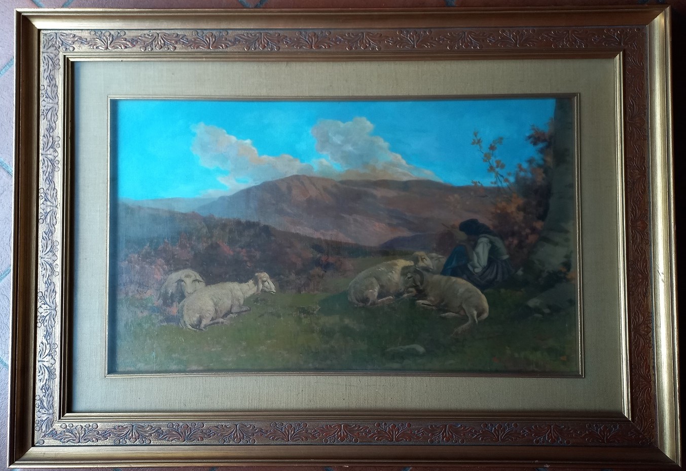 Giacobbi Ernesto (1891-1964) - Paesaggio con pastorella e pecore - olio su tavola cm.60x100 firmato in basso a destra