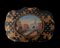 Miniatura a soggetto architettonico montata in guscio di finta tartaruga decorato...
