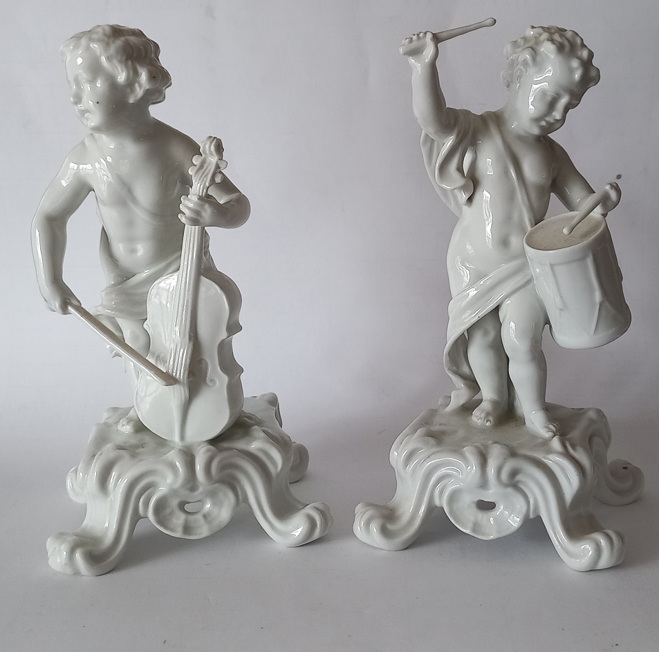 Musicanti - due figure in porcellana bianca h.cm.17,5 - manifattura di Dresda...