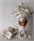 Due vasetti in ceramica decorati in oro e policromia h.max cm.20 - marchi alla base, uno di manifattura Bassano