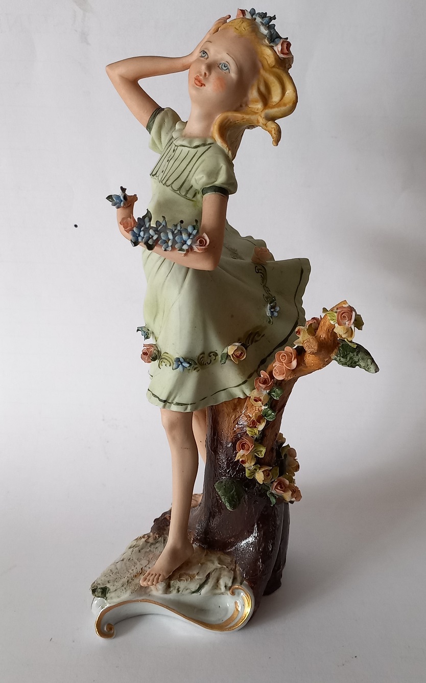 Giovane donna con fiori - porcellana biscuit h.cm.22 - firmata in basso -...