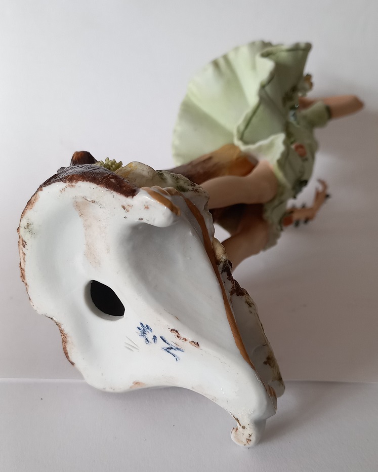 Giovane donna con fiori - porcellana biscuit h.cm.22 - firmata in basso - marchio alla base con N coronata - lievi difetti