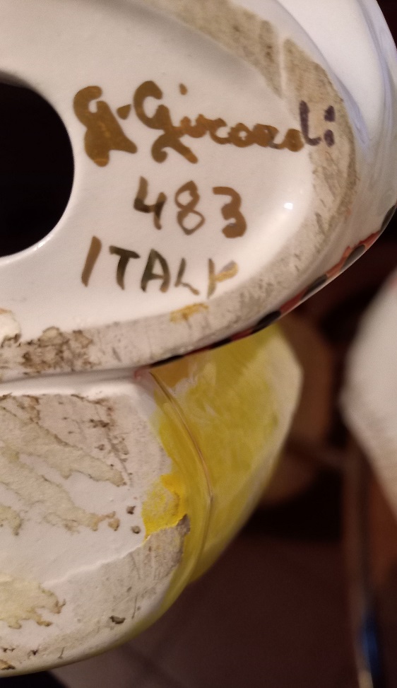 Vasetto vintage in ceramica policroma con giovane in abito rosso h.cm.16 - firmato G. Girardi Italy