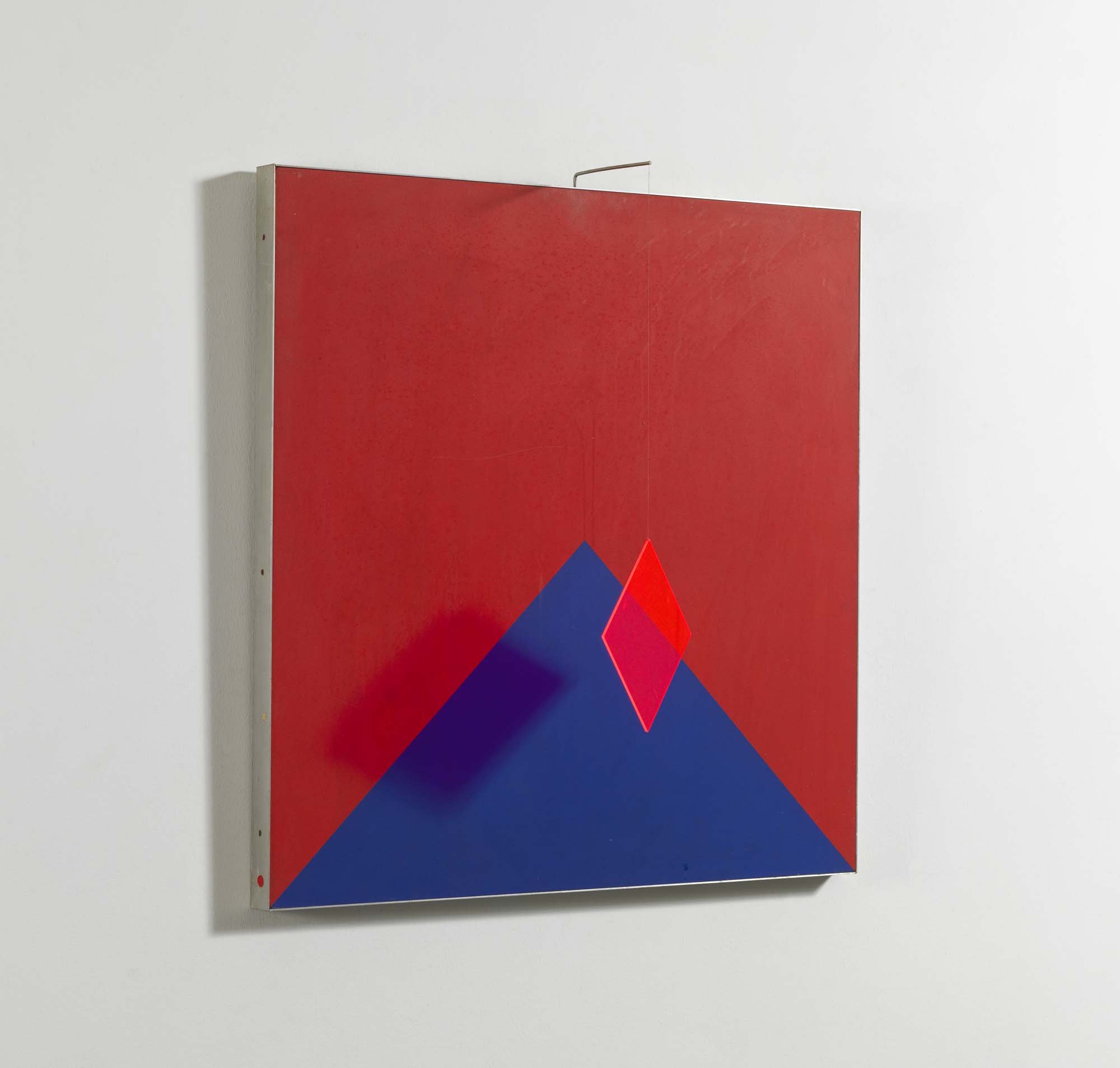 Tecnica mista su tavola, inserto in plexiglas, alluminio, cm. 82 x 80 x 14