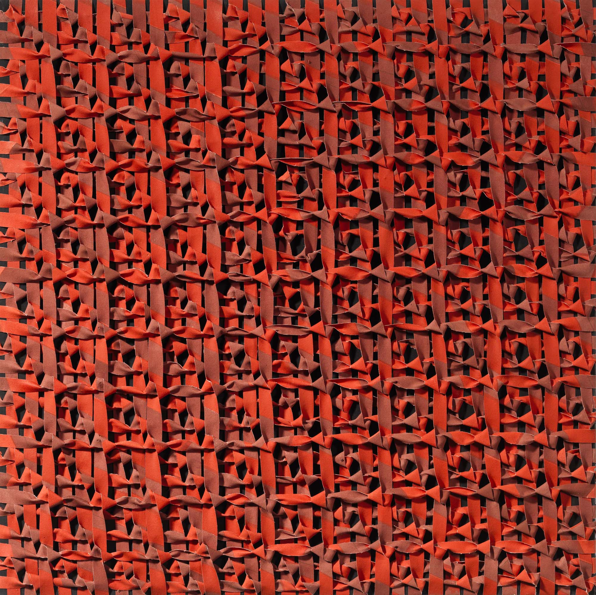 Tela tagliata e annodata applicata su tela, cm. 75,5 x 75,5
