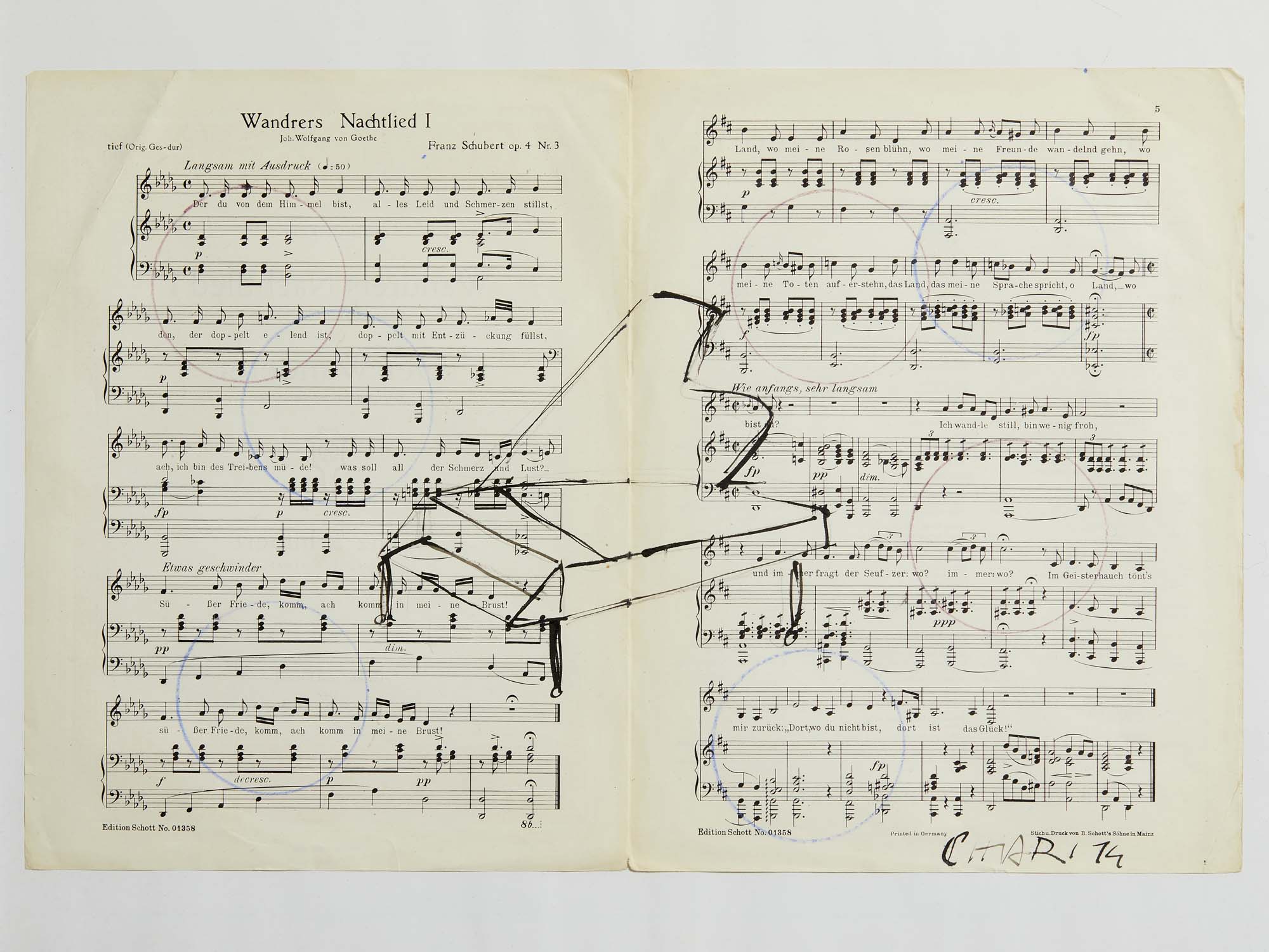 Tecnica mista su spartito musicale, cm. 30,5 x 46