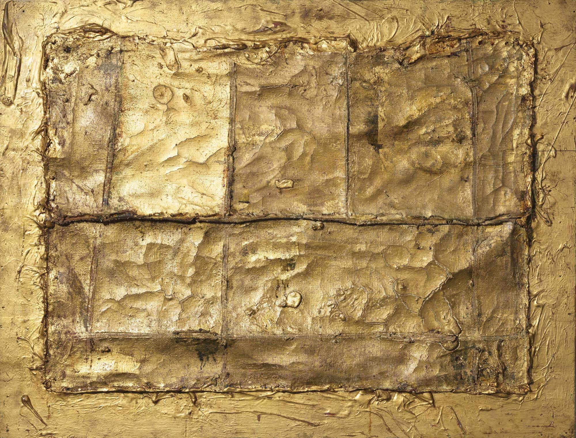 Polimaterico e pittura dorata su tavola, cm. 90 x 117