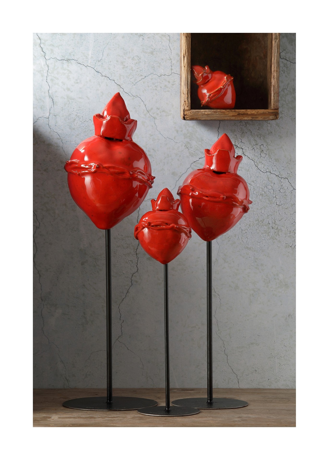 Nuovo Mondo Roberto Gallo-Andrea Giuseppe La Neve - He|Art XS: circonferenza 15 Cuore in ceramica smaltata. Rielaborazione e reinterpretazione della tipica lavorazione della ceramica. Nasce dall'esigenza di dare forma a qualcosa che, nell'immaginario collettivo, fosse legato alla tradizione popolare della terra di origine degli ideatori, la Sicilia, e che avesse un forte significato simbolico. La solennità del Cuore Sacro viene evidenziata ma allo stesso tempo smorzata dall'uso del colore. Cuore in ceramica smaltata. Rielaborazione e reinterpretazione della tipica lavorazione della ceramica. Nasce dall'esigenza di dare forma a qualcosa che, nell'immaginario collettivo, fosse legato alla tradizione popolare della terra di origine degli ideatori, la Sicilia, e che avesse un forte significato simbolico. La solennità del Cuore Sacro viene evidenziata ma allo stesso tempo smorzata dall'uso del colore.