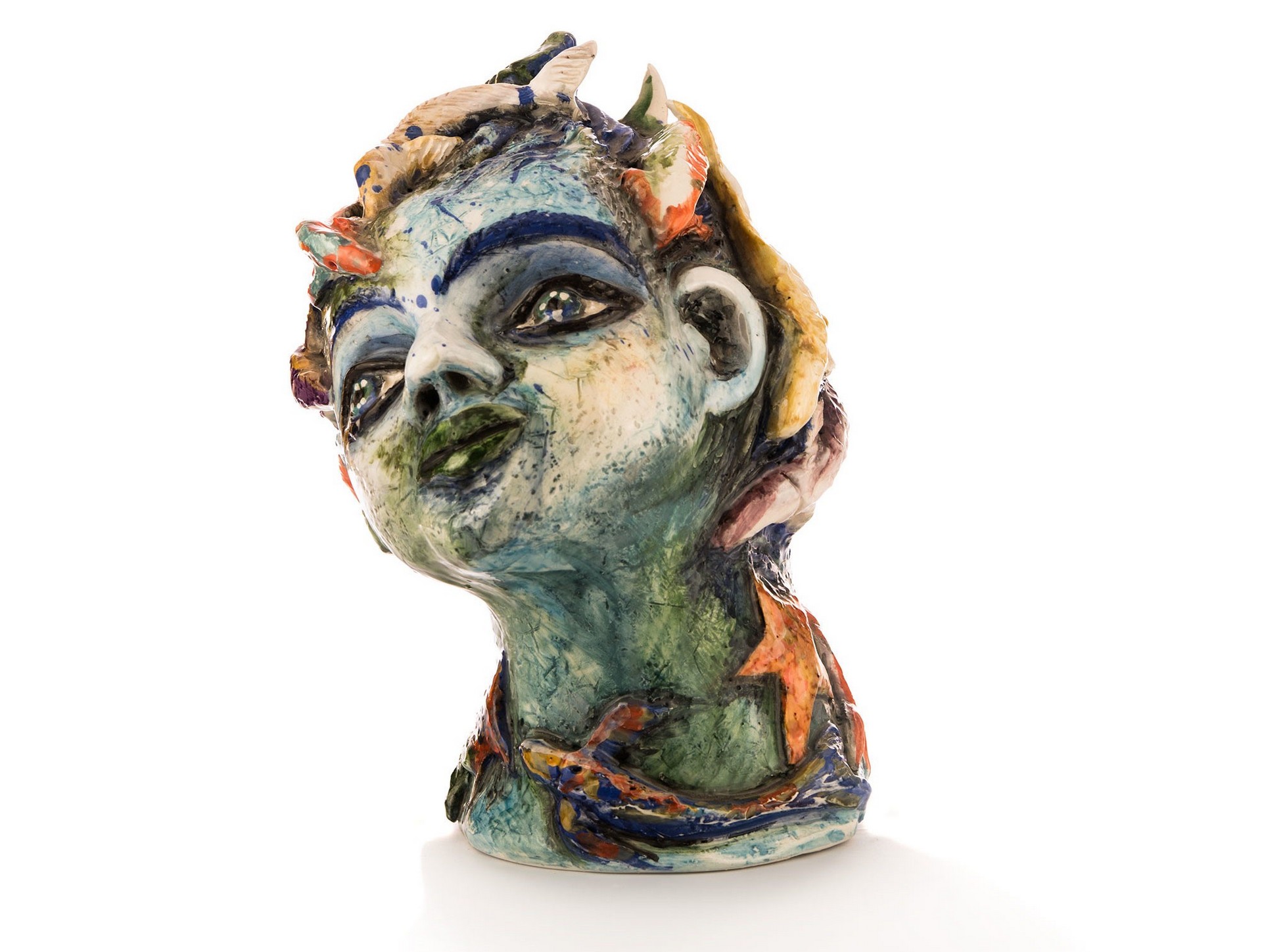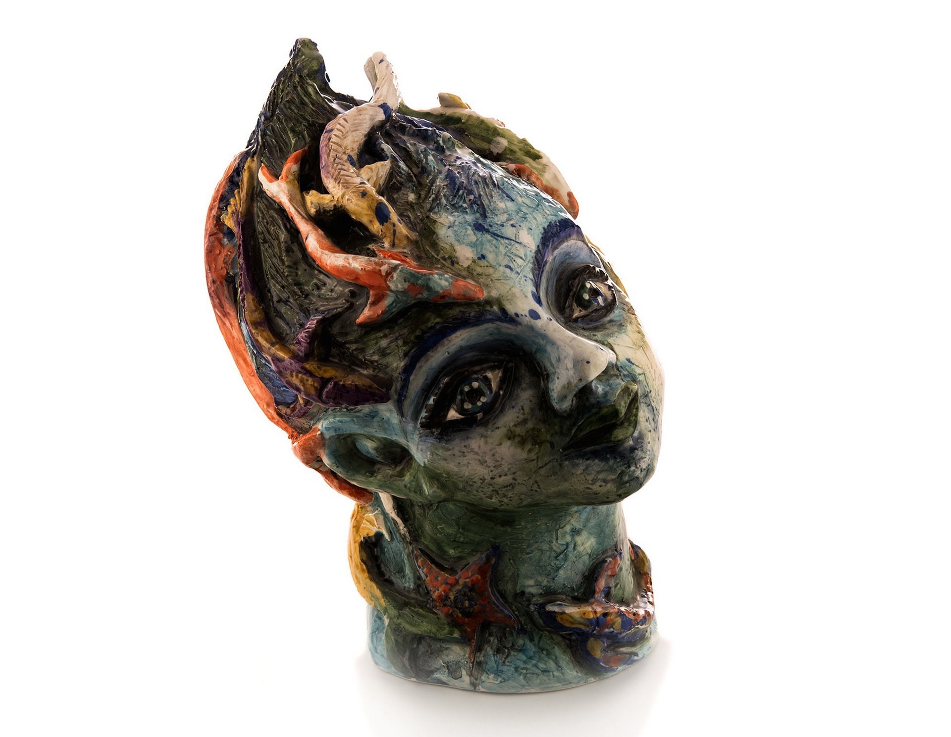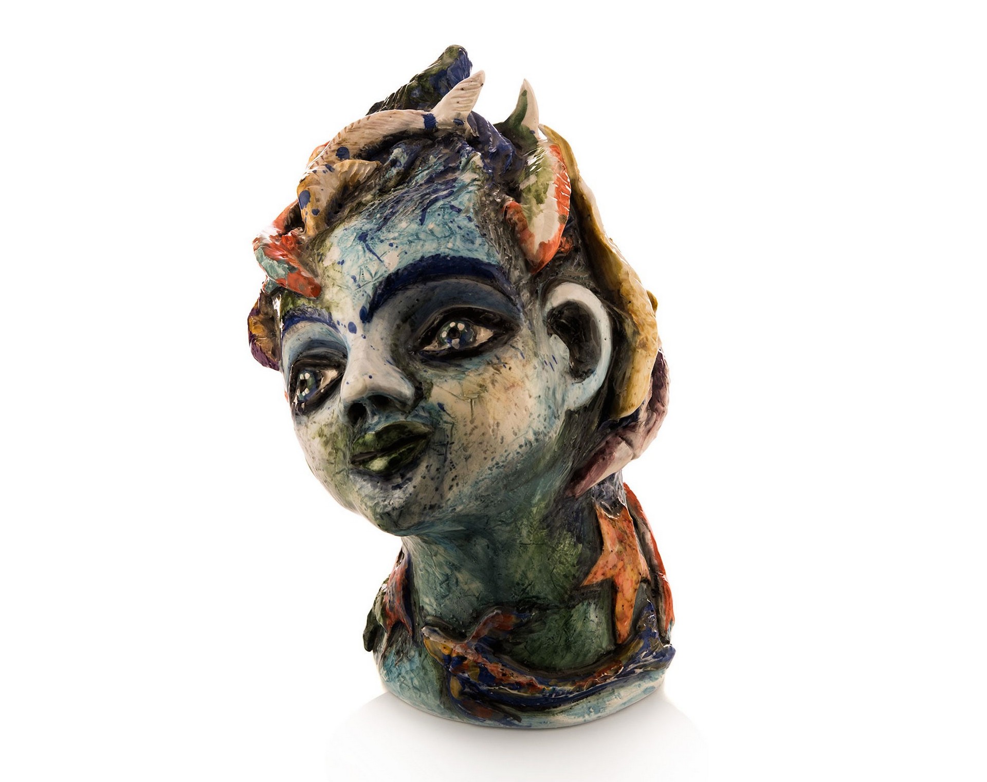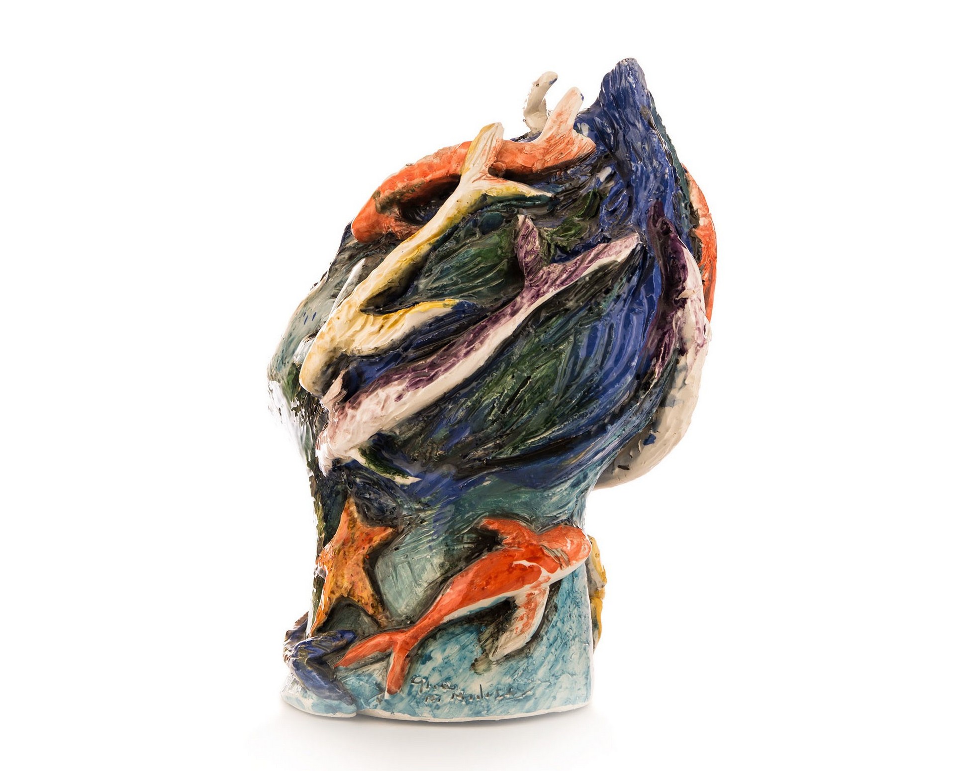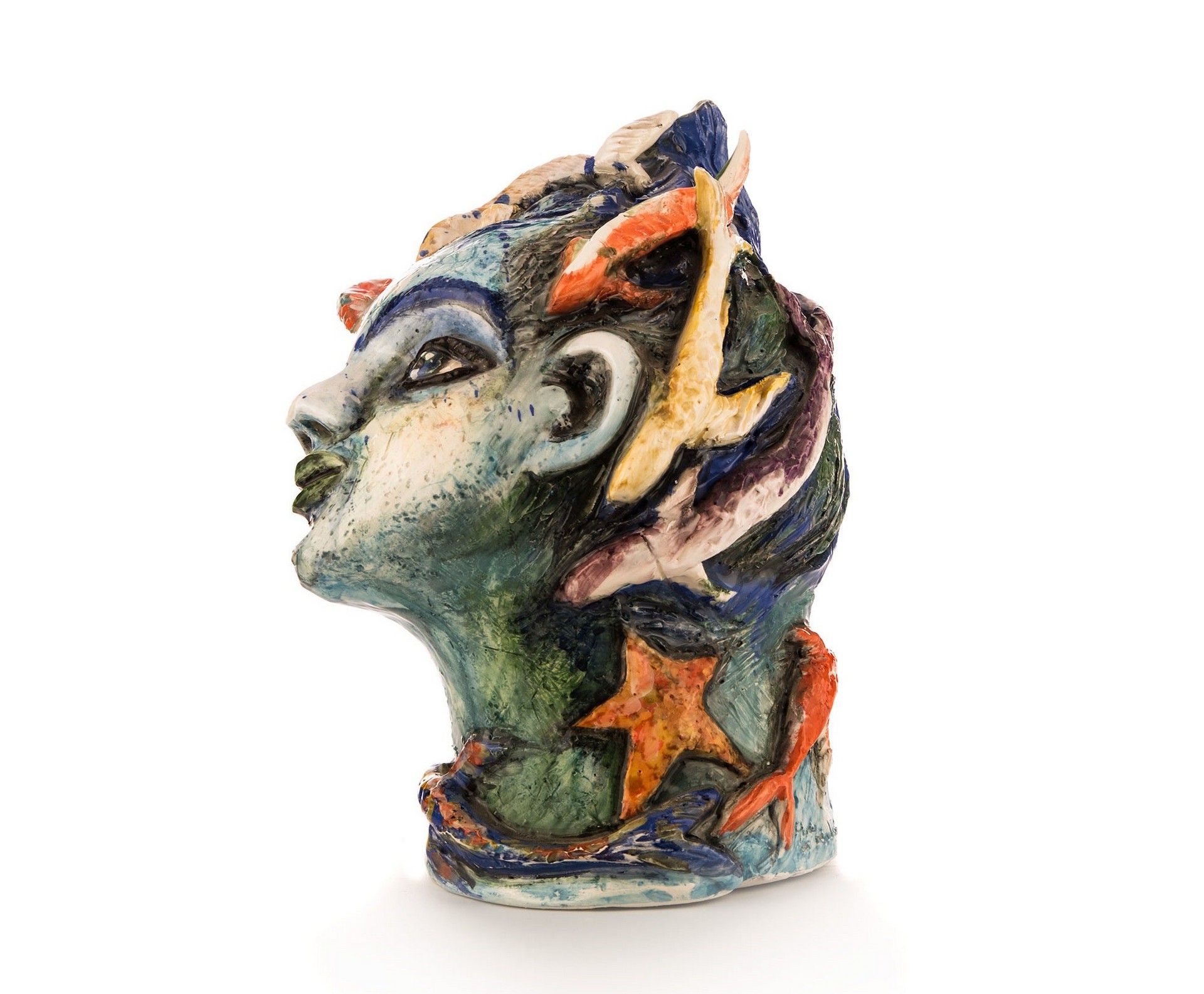 Ceramica Gloria Di Modica - Colapesce h cm 30x20x24 Ceramica Colapesce è un’interpretazione spettacolare della leggenda nata dalle mani dell’artista Gloria Di Modica, realizzata interamente a mano in ogni sua fase, la cui intenzione è quella di omaggiare le tradizioni popolari, quest’opera mostra chiaramente una vocazione dell’essere mediterraneo. Realizzata in argilla bianca, e rifinita con smalti lucidi, presenta le sfumature del mare, spaziando da un limpido celeste al profondo verde, con una ricchezza di dettagli arancioni, gialli, rossi, blu, tonalità esaltate dalla lucentezza degli smalti di alta qualità impiegati. Maiolicata con finitura lucida.