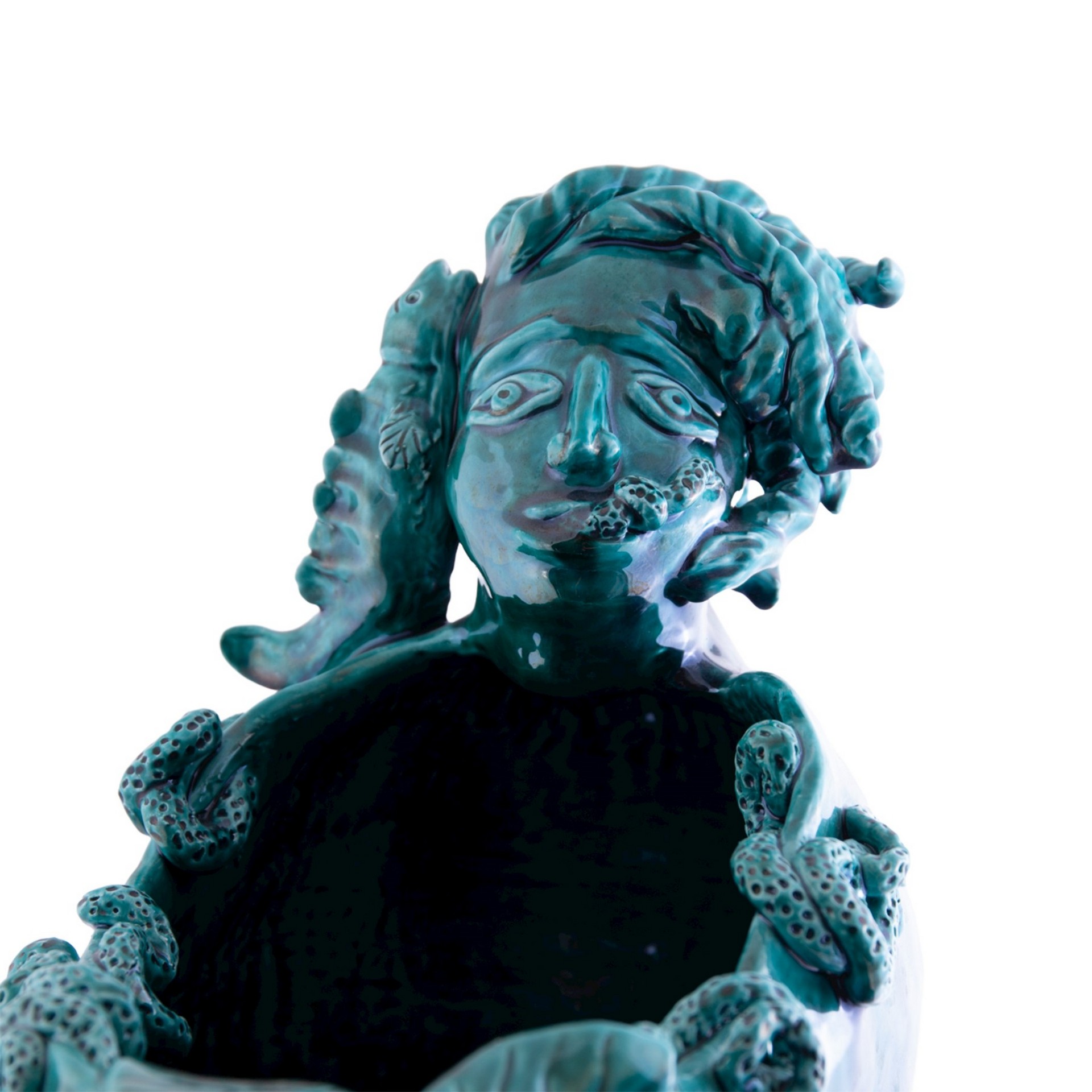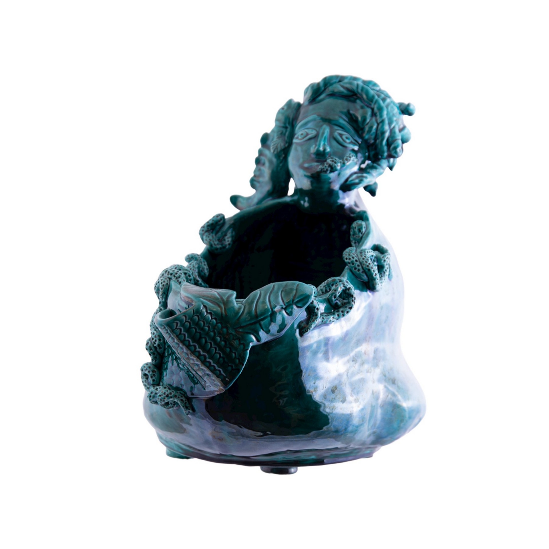 Patrizia Italiano è un artista artigiana, vive in Sicilia tra Palermo e la sua Filicudi, fonte di ispirazione e di ricerca. La ceramica è la sua passione da sempre. Il lavoro manuale e la creatività la hanno accompagnata in ogni momento della vita. Da giovanissima ha esposto a Milano, New York, a Tokyo, negli Emirati Arabi ed in altri Paesi. Ha ricominciato a lavorare dopo un lungo periodo di inattività con nuove collezioni di sculture, teste, piatti e vasi raccontando della Sicilia in modo ironico e contemporaneo. Ogni oggetto è realizzato a mano, senza ausilio di stampi o presse. Lavora e modella con diverse tecniche ogni pezzo, in modo differente uno dall’altro. Tutte le ceramiche sono cotte a gran fuoco con smalti e ingobbi o cristalline che compone personalmente. La collezione dei “ venditori di Sicilia”, nasce per l’amore verso la sua città, Palermo , con i suoi mercati, i suoi odori, i suoi cibi intrisi da secoli di cultura e di storia. Mediterranea, nasce per il suo secondo amore: l’isola di Filicudi dove ha il suo cuore; con il mare, la terra rossa e l’azzurro declinato in tanti modi. Le “Scapiddate “ raccontano invece, donne controcorrente, i capelli in aria, ma i piedi ben piantati per terra. Ogni opera è unica e può avere piccole differenze. È stata selezionata tra gli artigiani più interessanti del mondo presenti nella guida Homo Faber, dalla Fondazione Michelangelo.