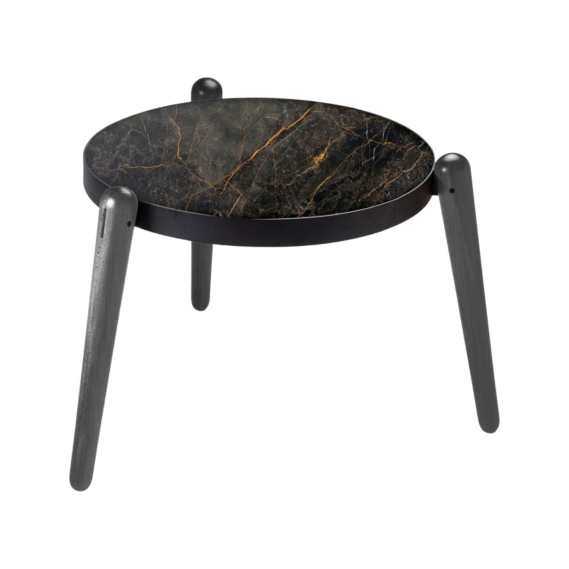 Tris in marmo Port Laurent è un coffee table destinato alla zona living disegnato dal designer Luca Maci. Tris si ispira ad alcuni manufatti popolari contemporanei realizzati dagli artigiani siciliani con materiali di recupero; a questa filosofia di accostamento di elementi differenti si ispira la sua costruzione attraverso la semplice connessione di componenti elementari. Il tavolino Tris, contraddistinto dal design raffinato e minimalista, si caratterizzano per la texture del marmo spazzolato con le sue venature color oro, racchiusa da un anello metallico in ferro verniciato a polvere e sostenuto ta piedi torniti in legno di faggio. I tavolini Tris by Luca Maci sono Made In Italy.