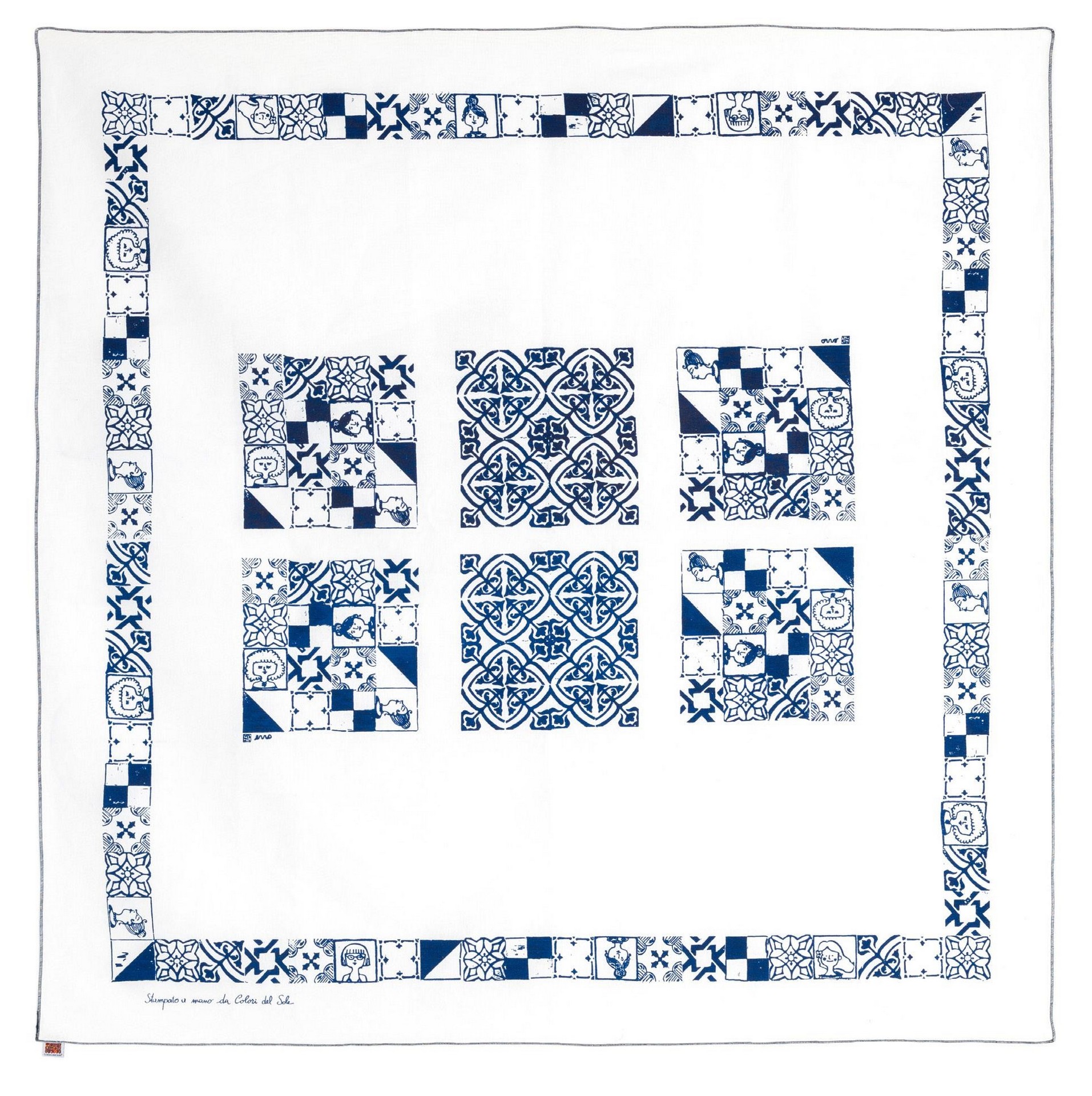 Colori del Sole - Maiorina Tovaglia quadrata, realizzata su un tessuto misto lino/cotone, stampata a manoTovaglia quadrata, realizzata su un tessuto misto lino/cotone, stampata a mano