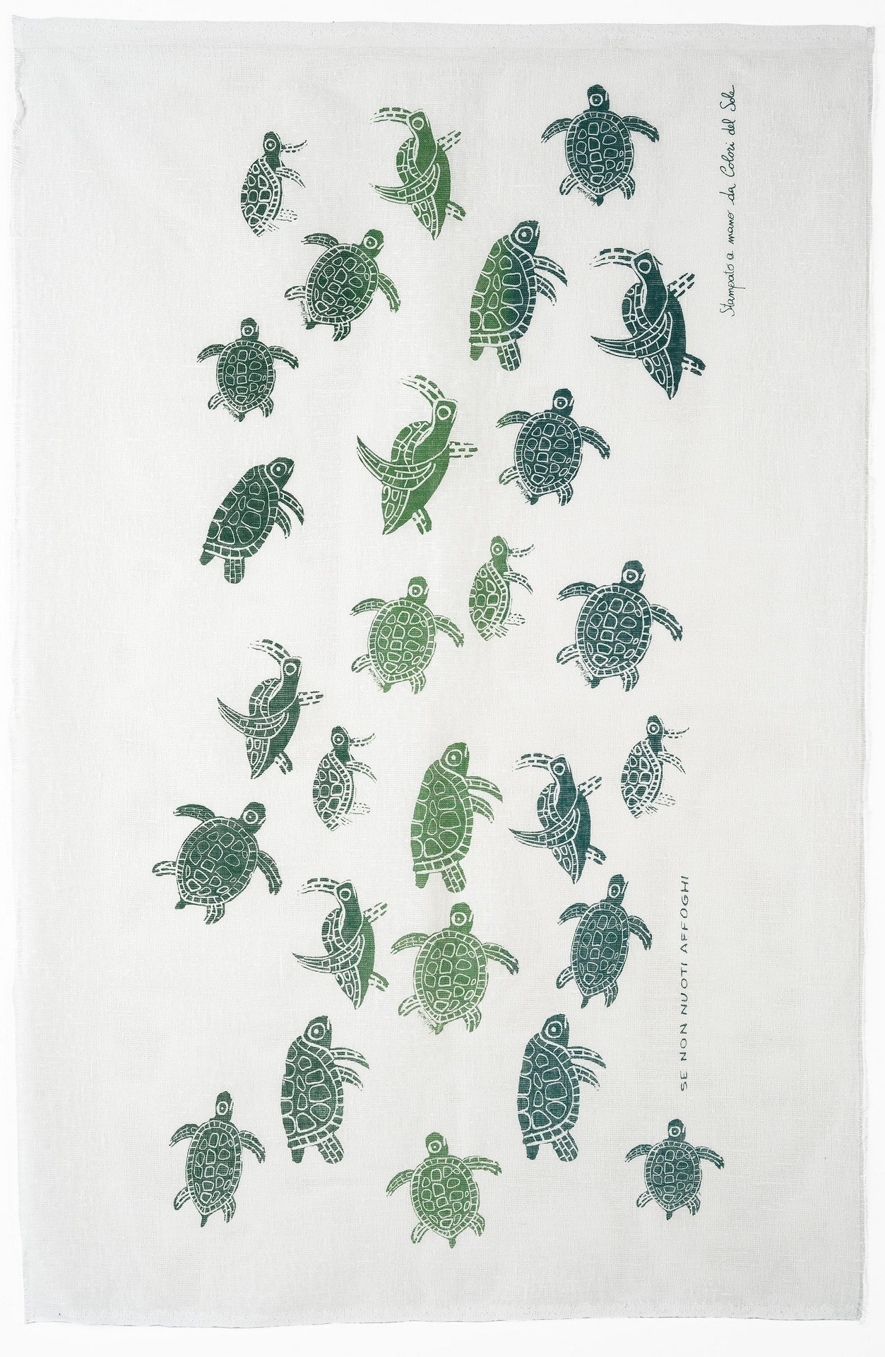 Colori del Sole - Tartarughe Telo realizzato in lino rete, stampato a mano.Telo realizzato in lino rete, stampato a mano.