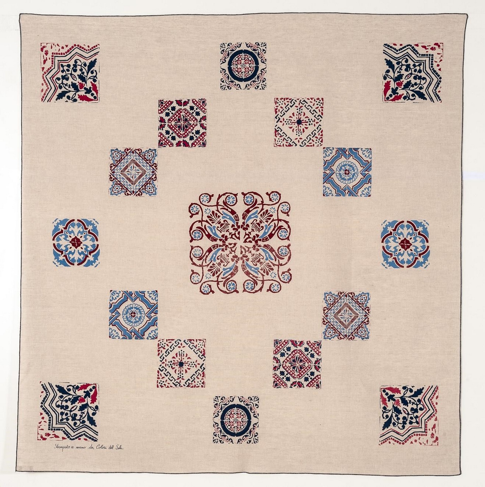 Colori del Sole - Luc Tovaglia quadrata, realizzata su cotone, stampata a manoTovaglia quadrata, realizzata su cotone, stampata a mano