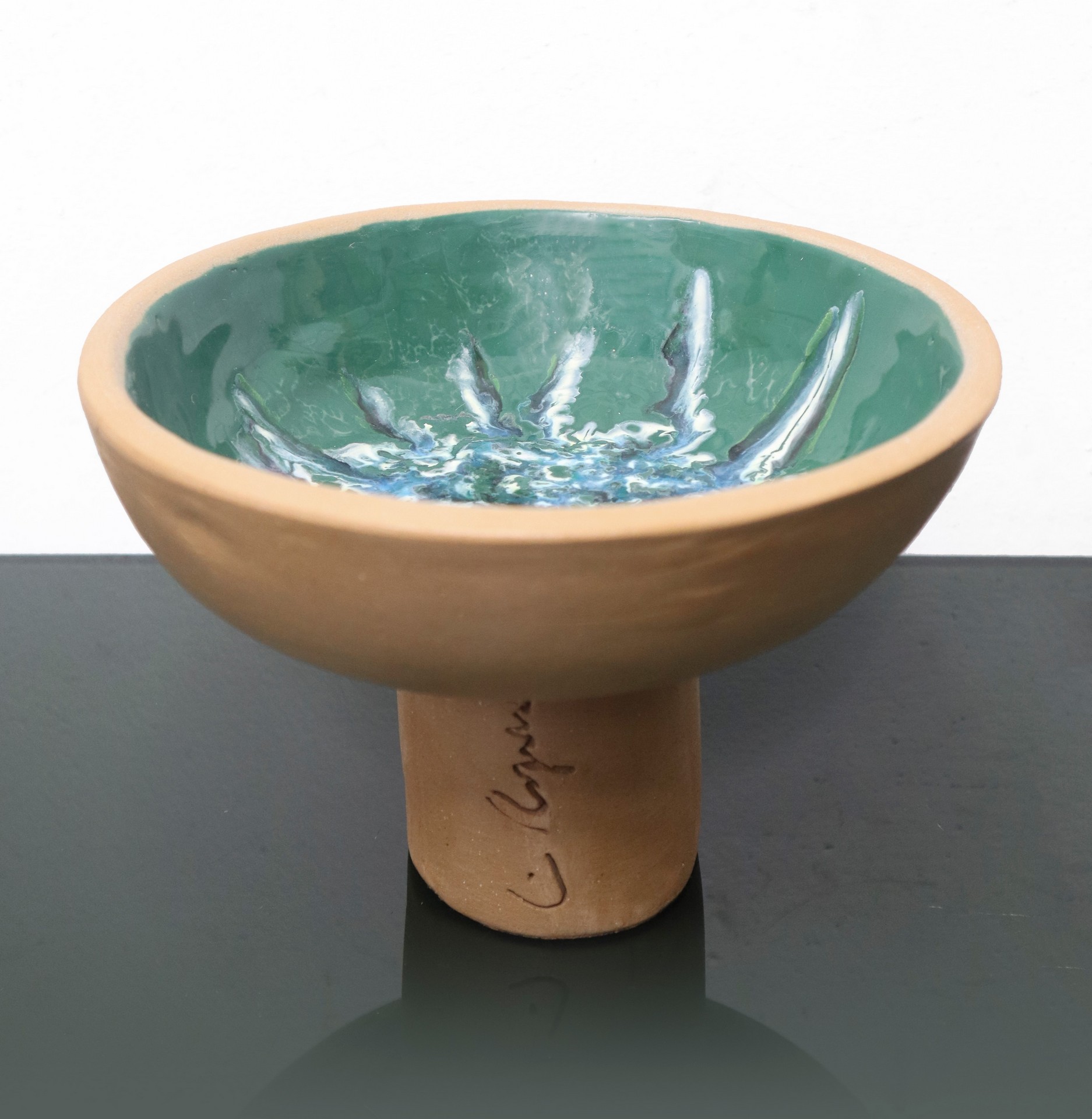 Lucia Ragusa (Catania) - Alzata in terracotta smaltata e invetriata H cm 12 x diametro cm 17,5