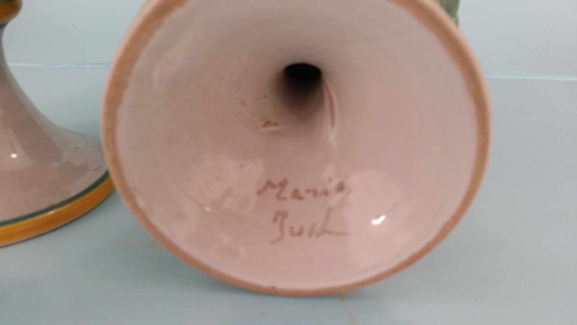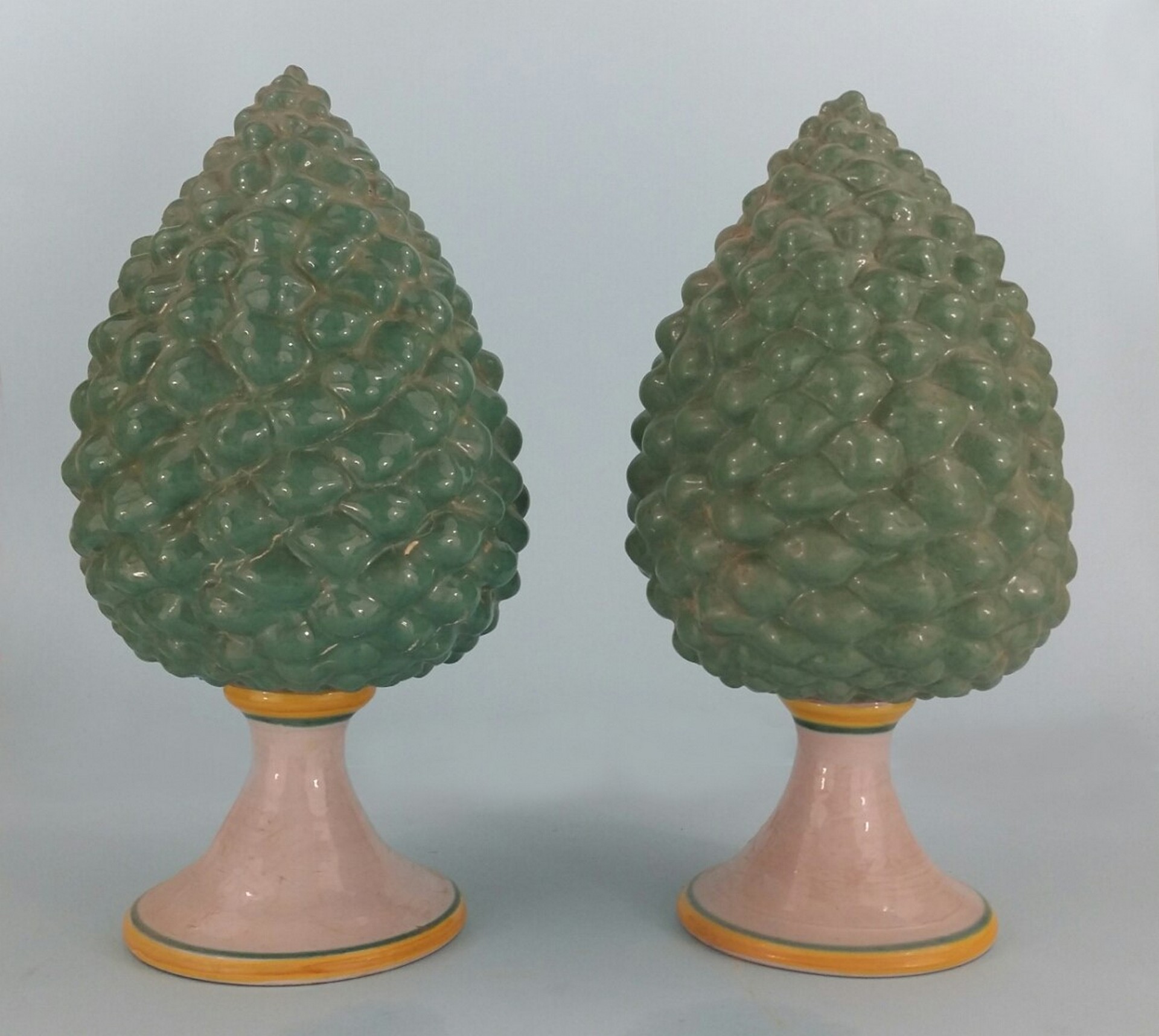 maiolica Mario Iudici (Caltagirone 1928) - Coppia di pigne h cm 30 maiolica Chi ama le ceramiche popolari, e in generale le tradizioni artigianali della terra siciliana, ha un grosso debito con il Maestro Mario Iudici.